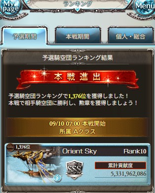 以上が「闇有利古戦場 予選終了 祝Aクラス進出」でした。