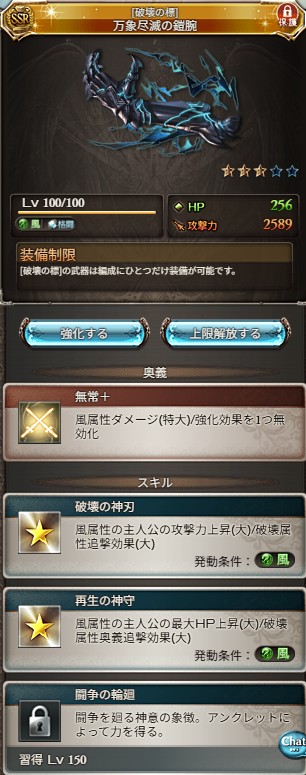 古戦場が風有利なので風武器から交換しました
