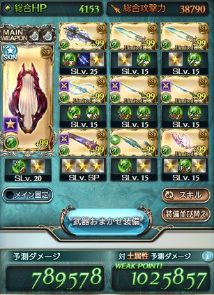 サブ :絶対否定の槍Lv250:スキル:アビダメ上限、極技