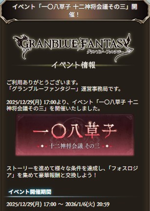 開催期間:2025年12月29日~2026年01月06日まで