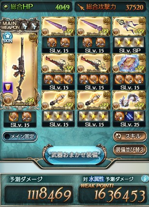 絶対否定の堅琴Lv250:スキル:渾身、アビダメ、極技