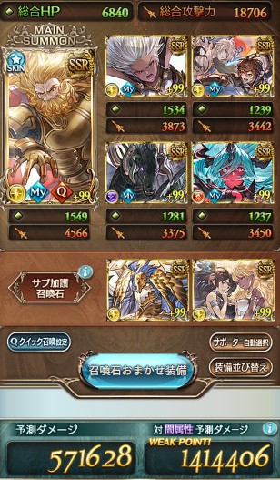サブ :オメガスウォード5凸:スキル:連撃、アビダメ、奥義ゲージ上昇量UP