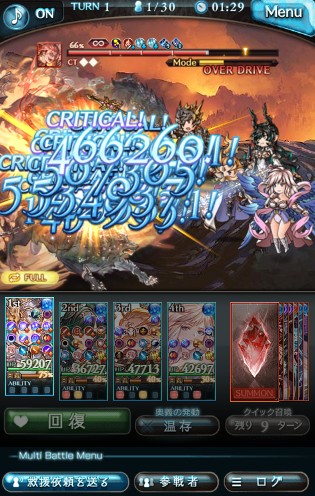 主人公アビ全部、ハイラ3、ウーノ2、ガブ2で奥義オフ攻撃